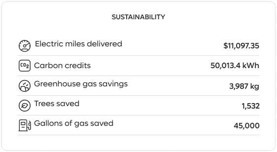 View an all-time report of the environmental impact of your transition to an electric-fleet, including avai