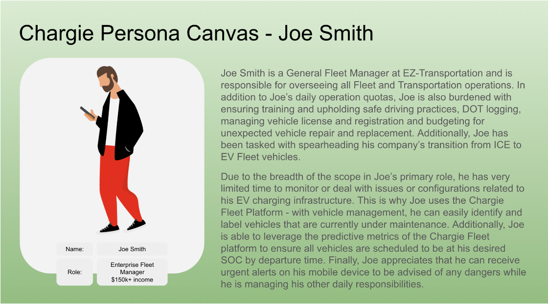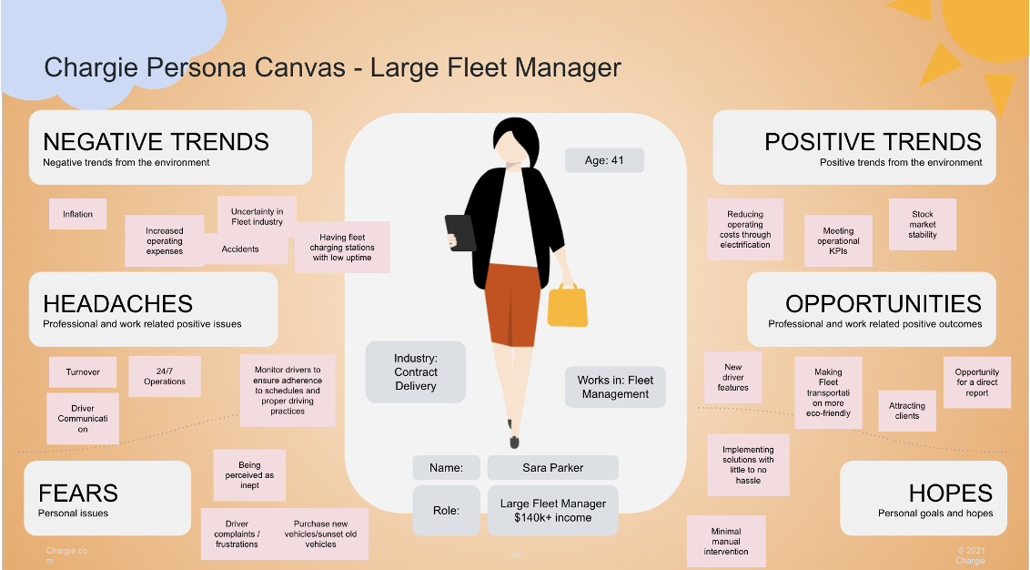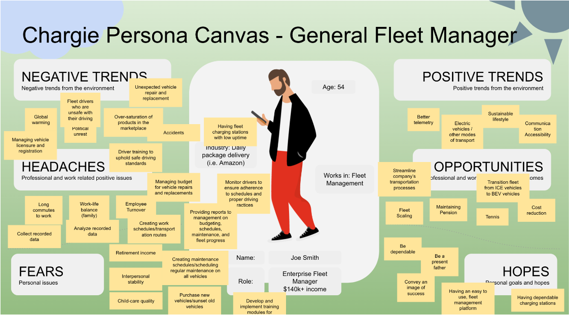 Conducted user interviews with a variety of personas - fleet drivers, those who currently manage electric fleets, those who currently manage ICE fleets and are planning for electrification, and more!